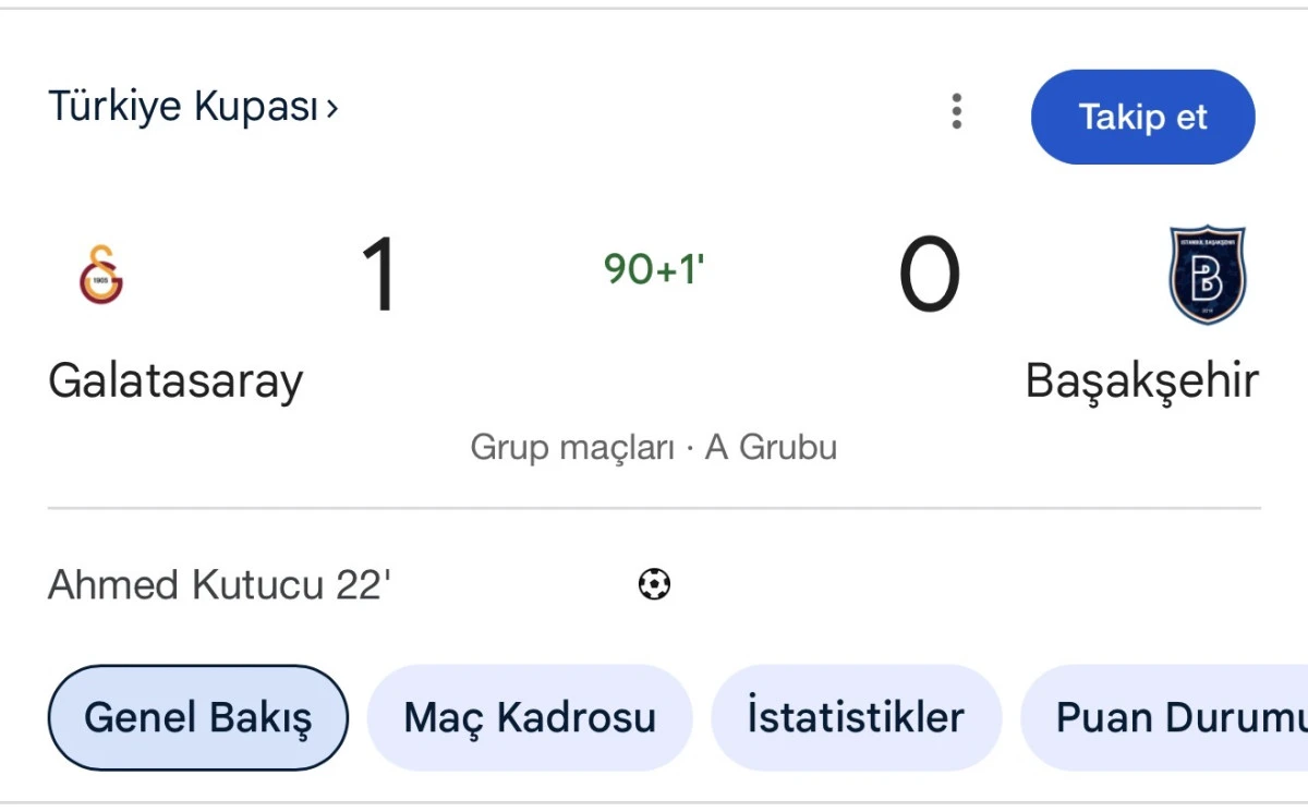Bu zafer, Galatasaray’ı grupta avantajlı konuma getirirken, Başakşehir’in diğer rakipleri Boluspor, Fatih Karagümrük ve Trabzonspor karşısında toparlanması gerekecek. Maçın hakemi Halil Umut Meler’in kararları tartışma yaratsa da, genel olarak adil bir yönetim sergilediği söylenebilir. 34