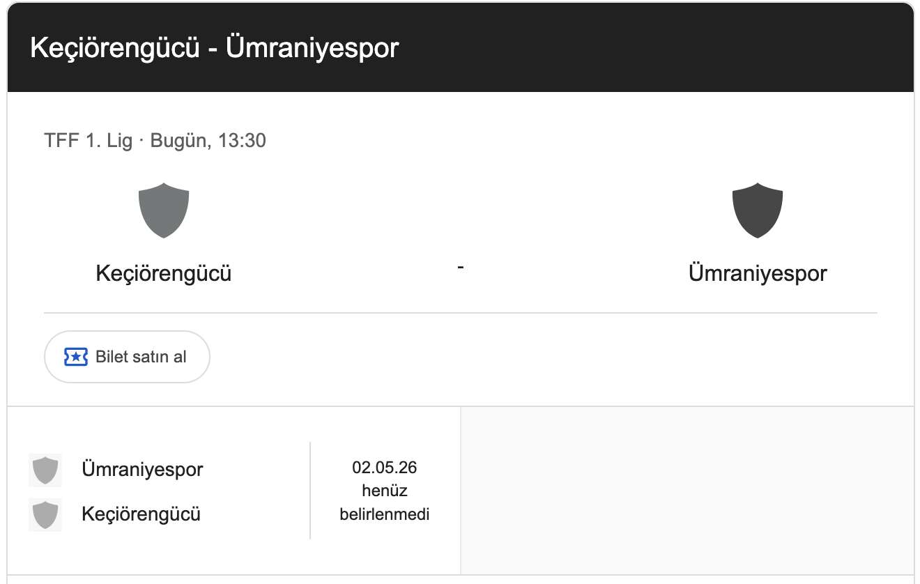 Ligin orta sıralarını ilgilendiren bu maç, her iki takım için de dönüm noktası. Keçiörengücü galibiyetle devreyi kapatırsa moral üstünlüğü yakalayacak. Ümraniyespor ise deplasmandan puanla dönerek rahat nefes alacak.